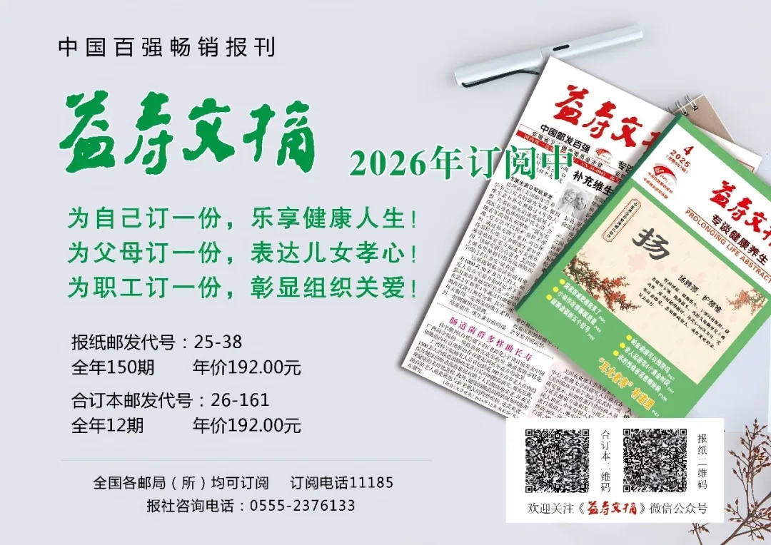 欢迎订阅《益寿文摘》报