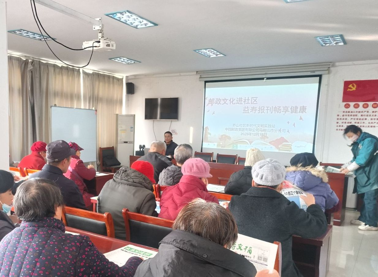 为丰富社区居民精神文化生活,传播科学养生知识,营造“老有所学、老有所乐”的浓厚氛围,12月18日上午,花山区乔山社区新时代文明实践站联合中国邮政集团有限公司马鞍山市分公司开展主题为“邮政文化进社区 益寿报刊畅享健康”阅读活动。此次活动巧妙融合了邮政文化与社区关怀,为社区居民,特别是中老年朋友们带来了一场温暖而充实的精神文化盛宴。